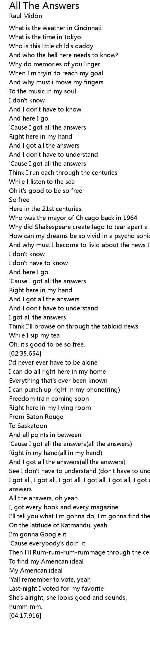 I got all, I got all, I got all, I got all, I got all, I got all the answers |