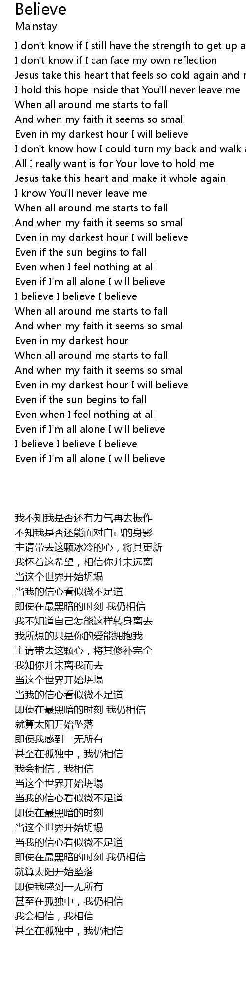 Even in my darkest hour I will believe |