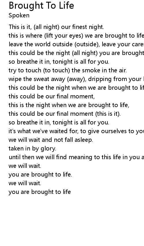 | you are brought to life |