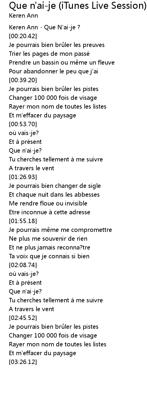 | [00:00.62] | Keren Ann - Que N'ai-je ? |