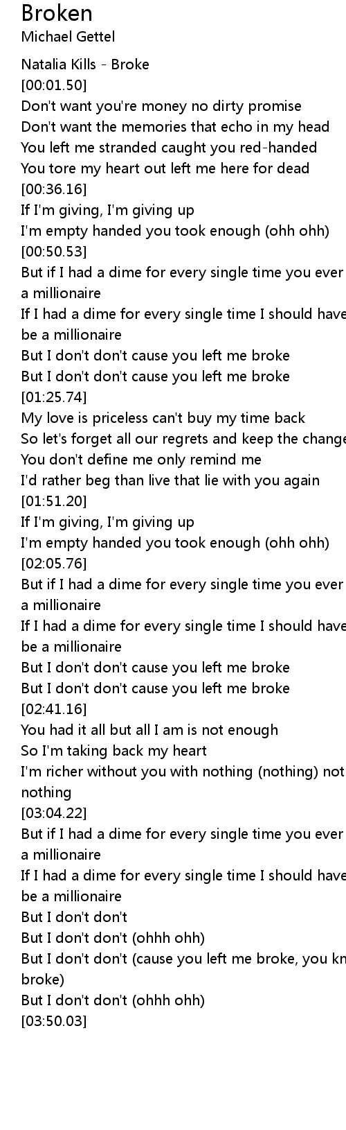 But I don't don't (cause you left me broke, you know you left me broke) |