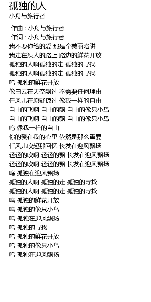 | [00:01.00] | 作词 : 小舟与旅行者 |