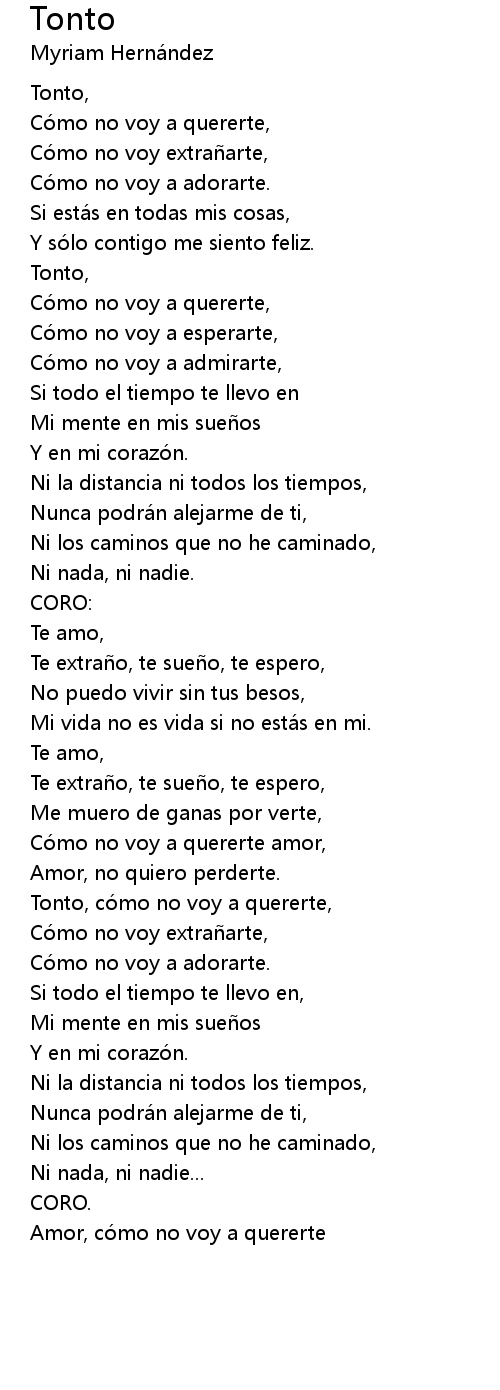 | Tonto, co mo no voy a quererte, | |
