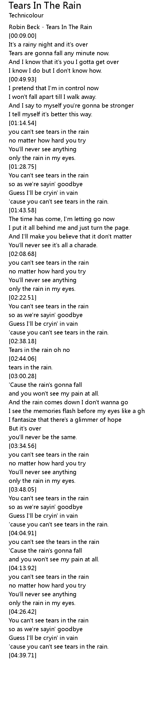Tears in the rain oh no |