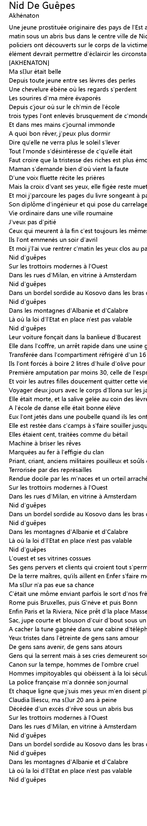 | Elle est restée dans c'camps à s'faire souiller jusqu'au mois d'décembre | |