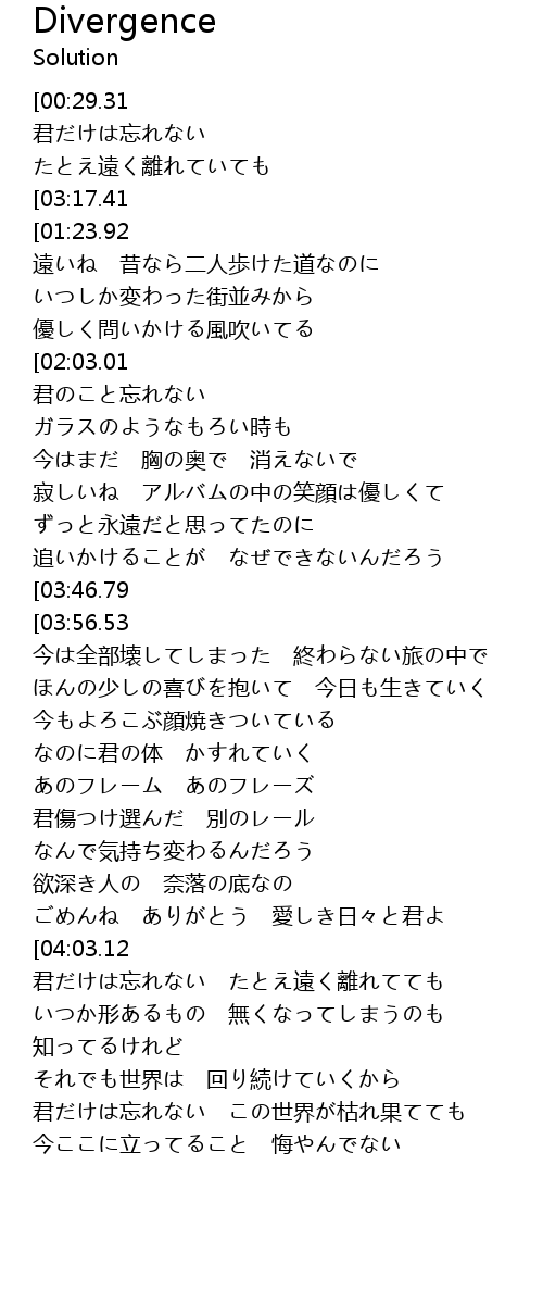 | [00:01.56] | 君だけは忘れない |