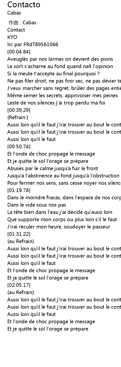 | [00:44.43] | Aussi loin qu'il le faut j'irai trouver au bout le contact |