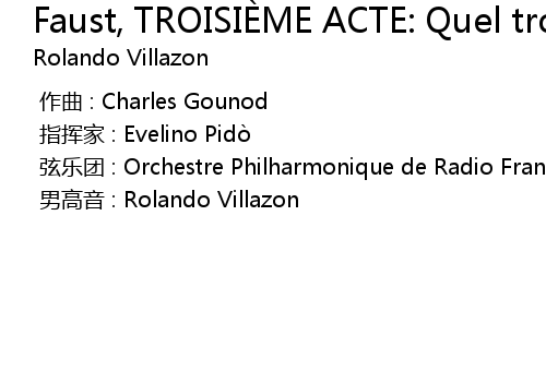 | Song | Faust, TROISIÈME ACTE: Quel trouble inconnu me pénètre! ... Salut! Demeure chaste et pure (Faust) |