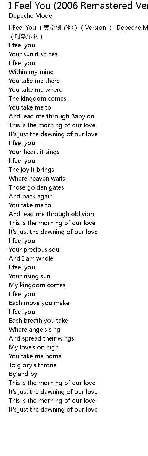 | [00:00.00] | I Feel You gǎn jué dào le nǐ Version Depeche Mode shí máo yuè duì |