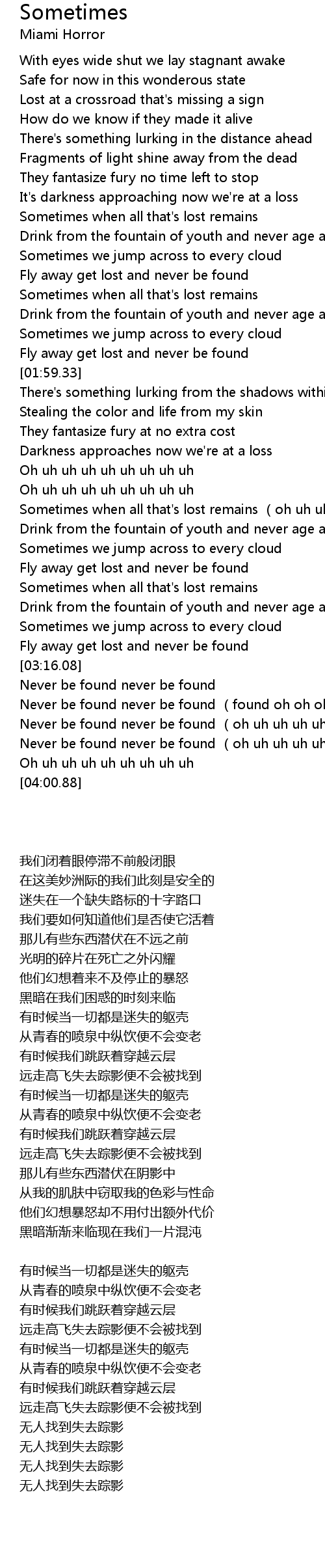 | [03:30.15] | Never be found never be found found oh oh oh oh oh oh oh |
