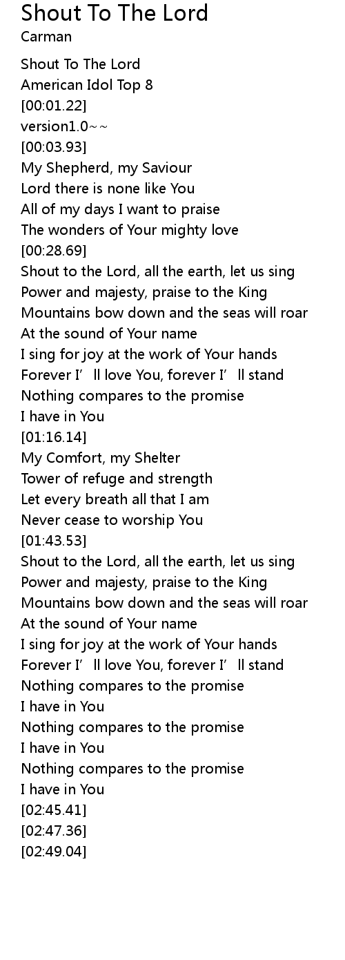 | [01:46.38] | Shout to the Lord, all the earth, let us sing |