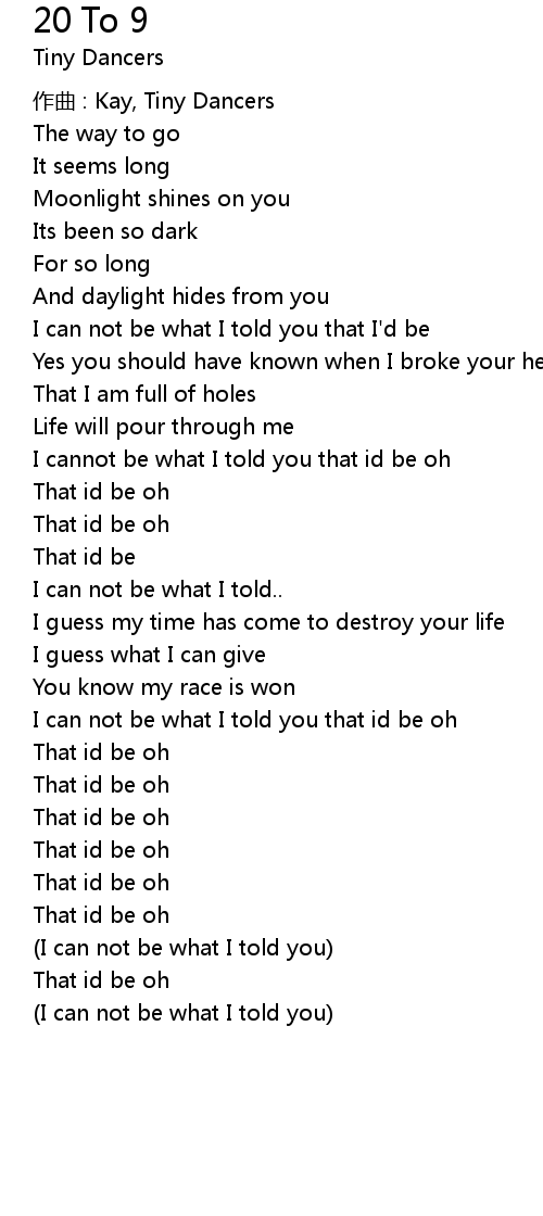 | zuò qǔ : Kay, Tiny Dancers | |