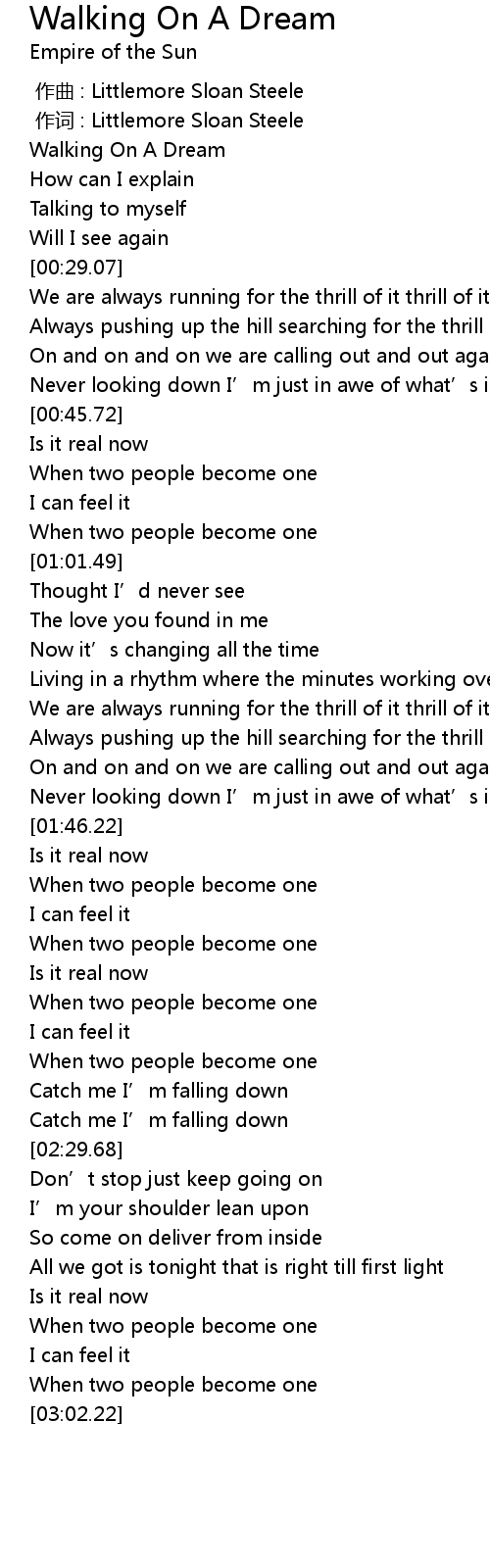 | [00:13.93] | Walking On A Dream |