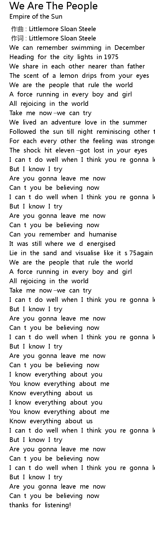 | [00:01.00] | 作词 : Littlemore Sloan Steele |