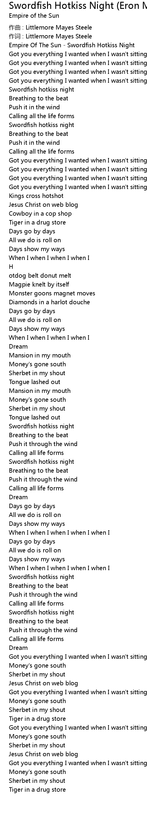 | Empire Of The Sun Swordfish Hotkiss Night | |