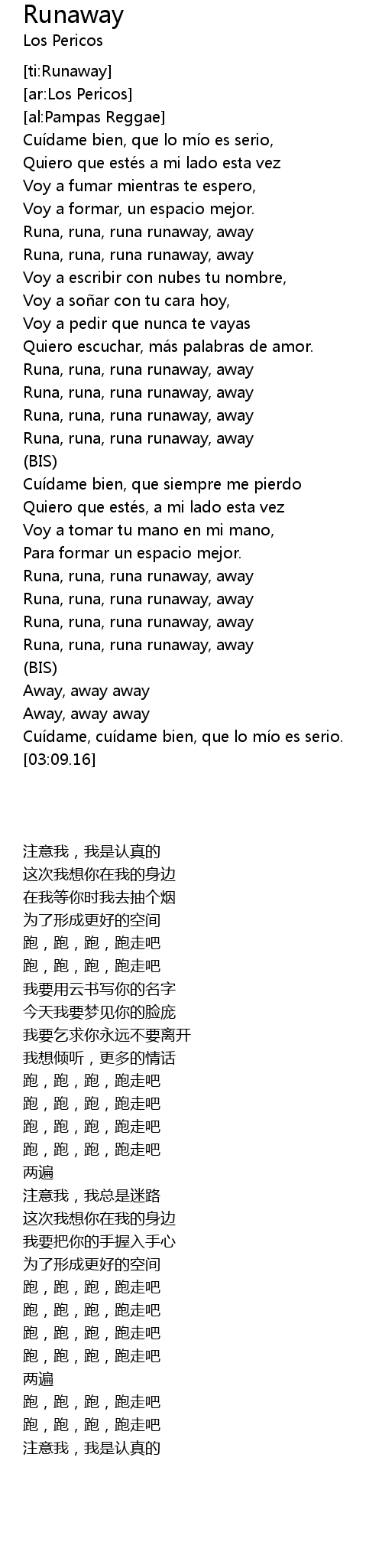 | [00:41.26] | Runa, runa, runa runaway, away |
