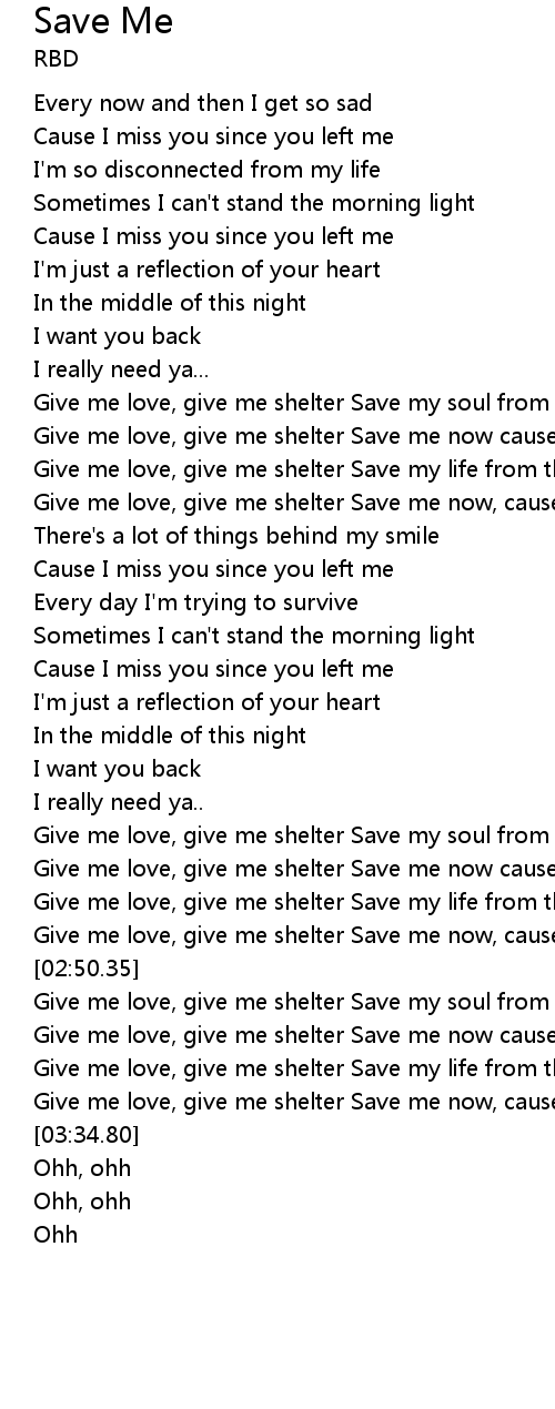 | [01:04.04] | Give me love, give me shelter Save my soul from this loneliness |
