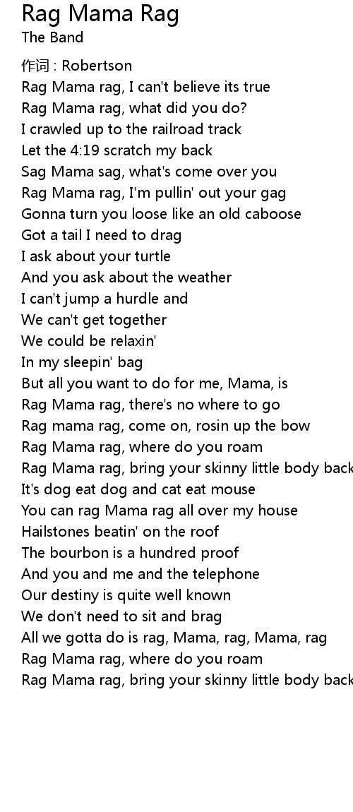 | All we gotta do is rag, Mama, rag, Mama, rag | |