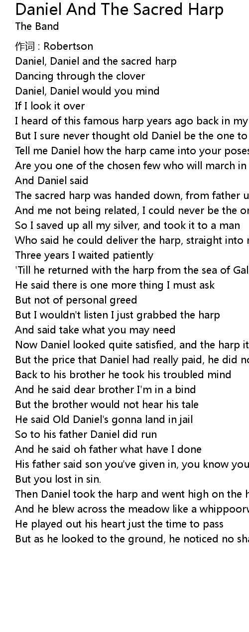 | Now Daniel looked quite satisfied, and the harp it seemed to glow | |