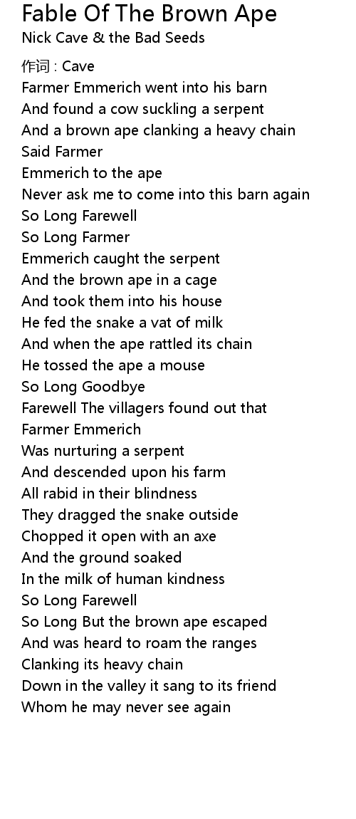 | Song | Fable Of The Brown Ape |