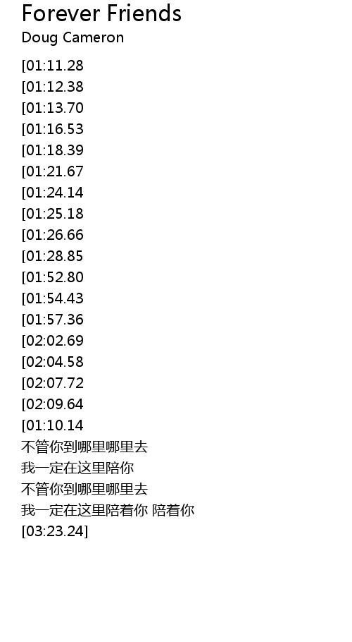 | [02:25.49][01:54.43][01:34.14][00:50.62] | forever 朋友 |