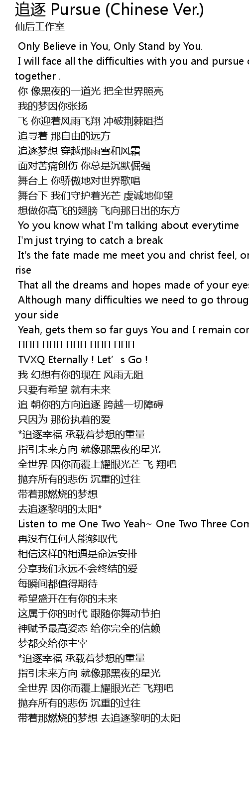 | Song | 追逐 Pursue (Chinese Ver.) |