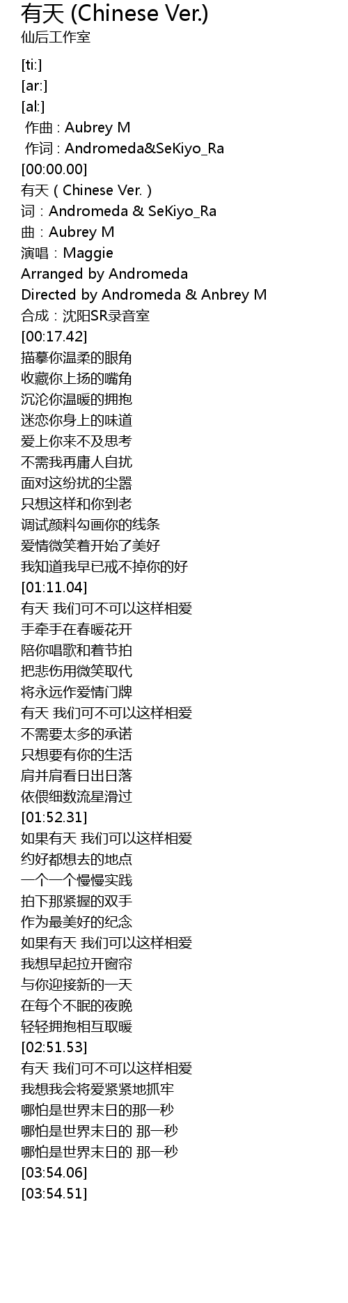 | [00:02.32] | yǒu tiān Chinese Ver. |