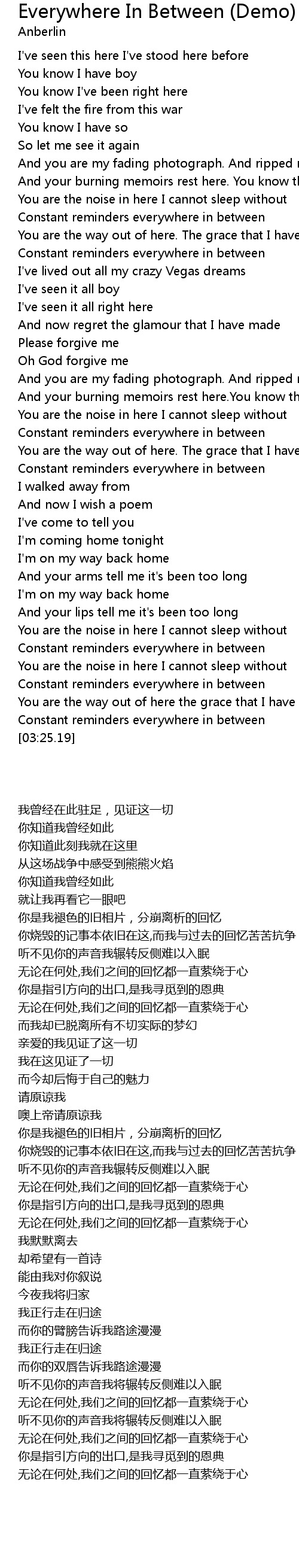 Everywhere In Between (Demo) Lyrics