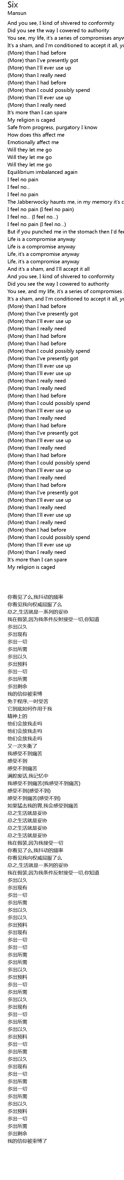 | [00:30.200] | And you see, I kind of shivered to conformity |