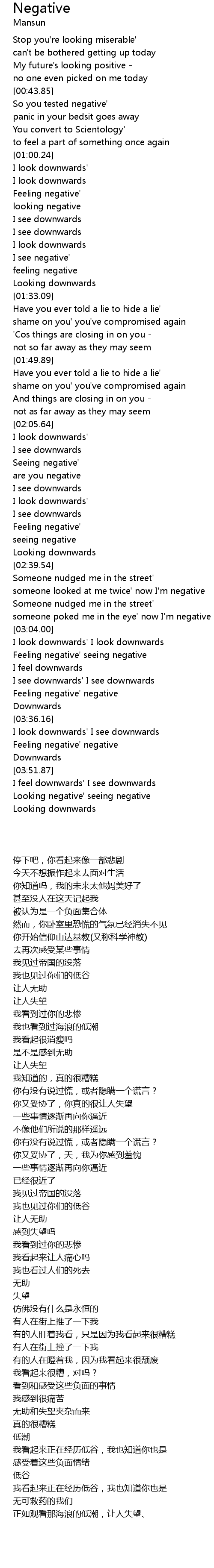 | [02:43.71] | someone looked at me twice' now I'm negative |