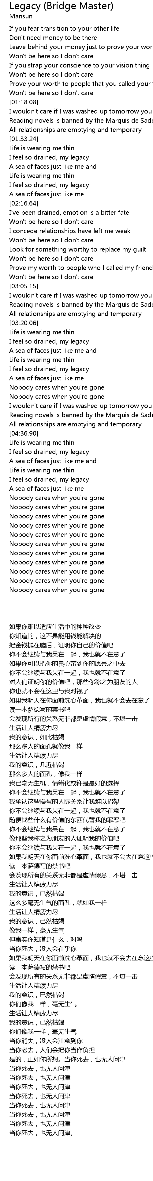 | [00:47.77] | Leave behind your money just to prove your worth |