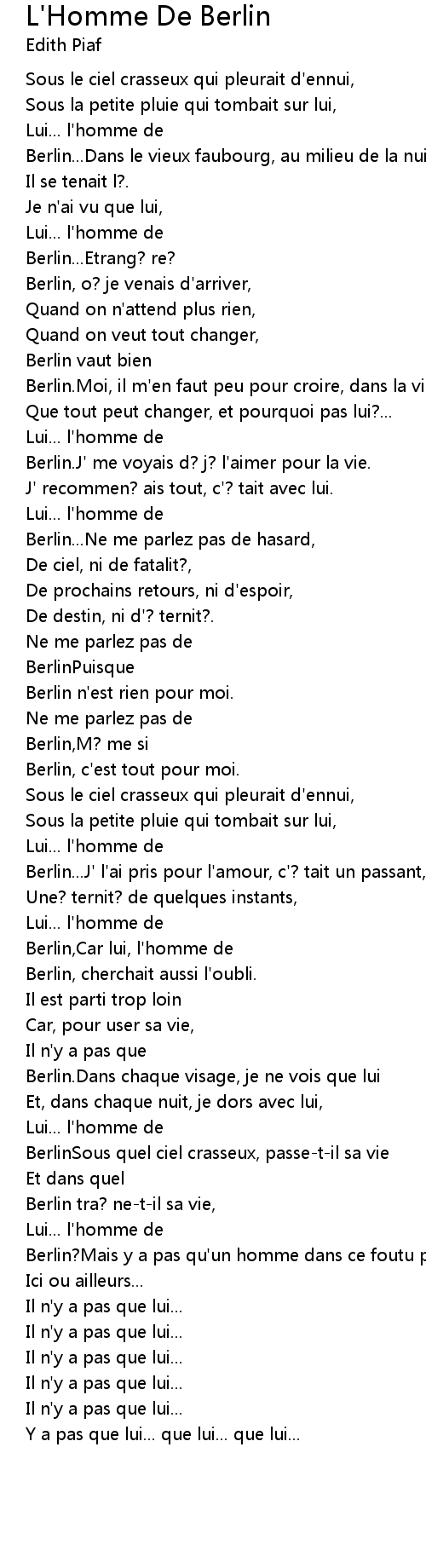 Berlin...J' l'ai pris pour l'amour, c'? tait un passant,