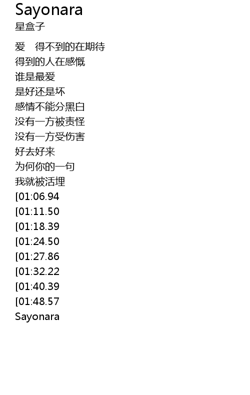 | [02:56.16][01:48.57] | Say Sayonara |