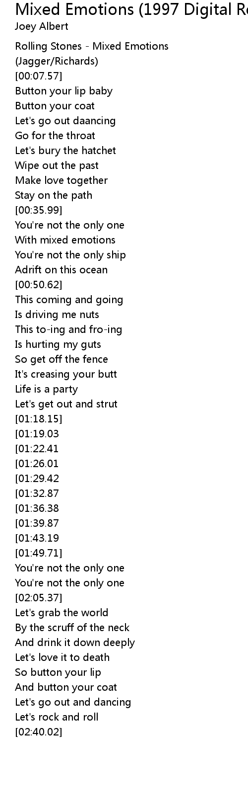 | [00:00.00] | Rolling Stones - Mixed Emotions |