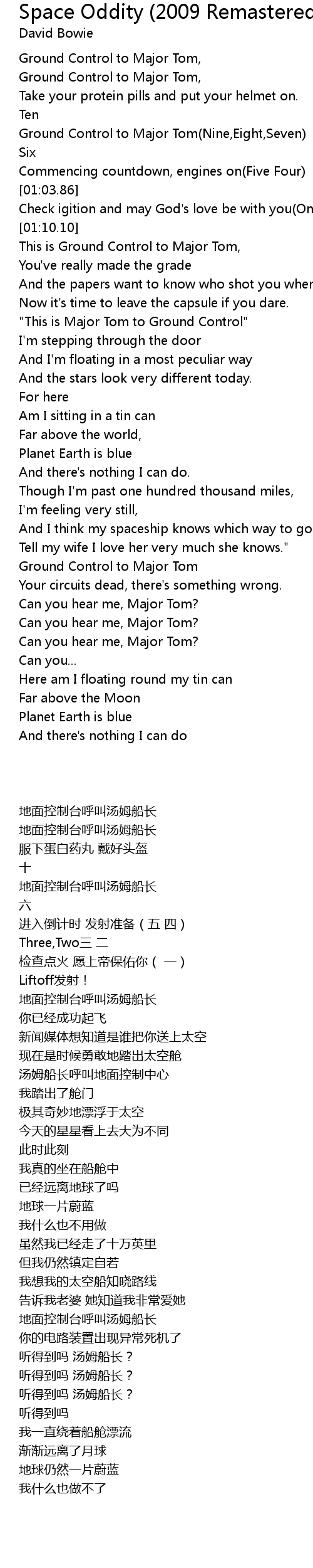 [03:34.86] Can you hear me, Major Tom?