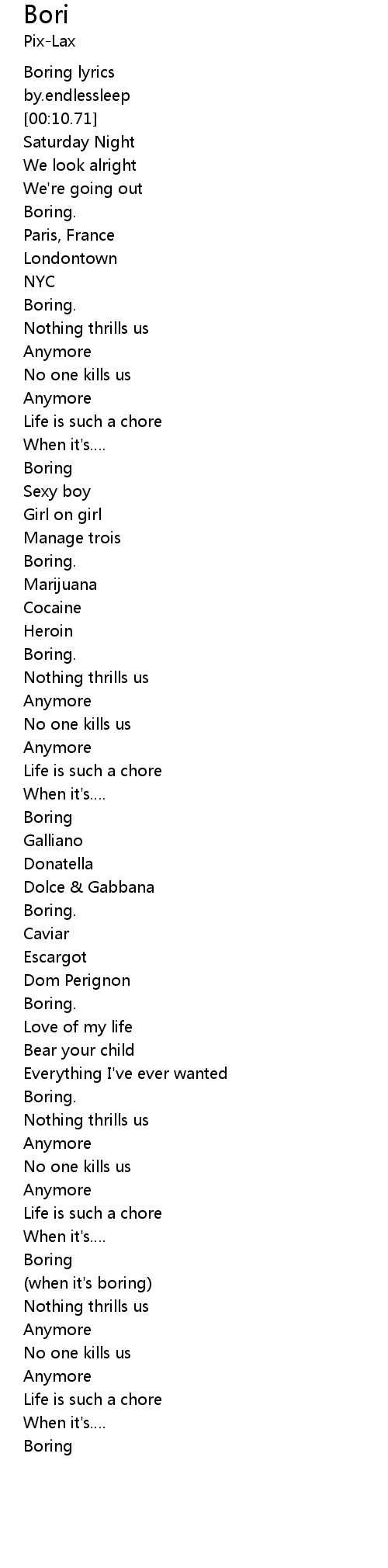 | [00:07.34] | Boring lyrics |