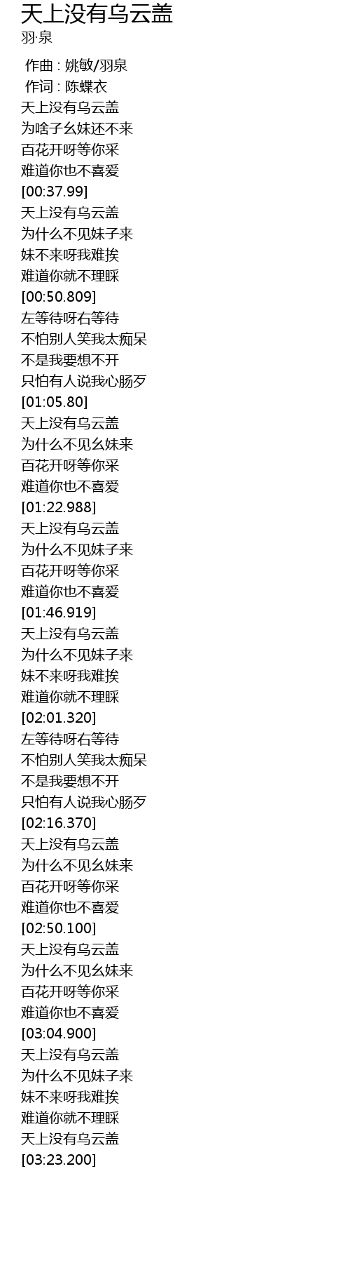 | [00:00.00] | 作曲 : 姚敏/羽泉 |