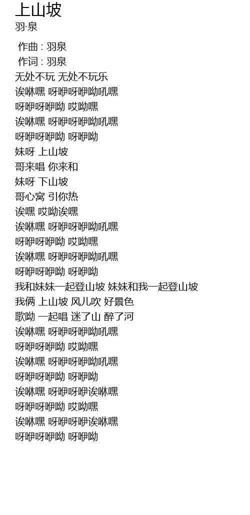 | [02:07.050] | 我和妹妹一起登山坡 妹妹和我一起登山坡 |