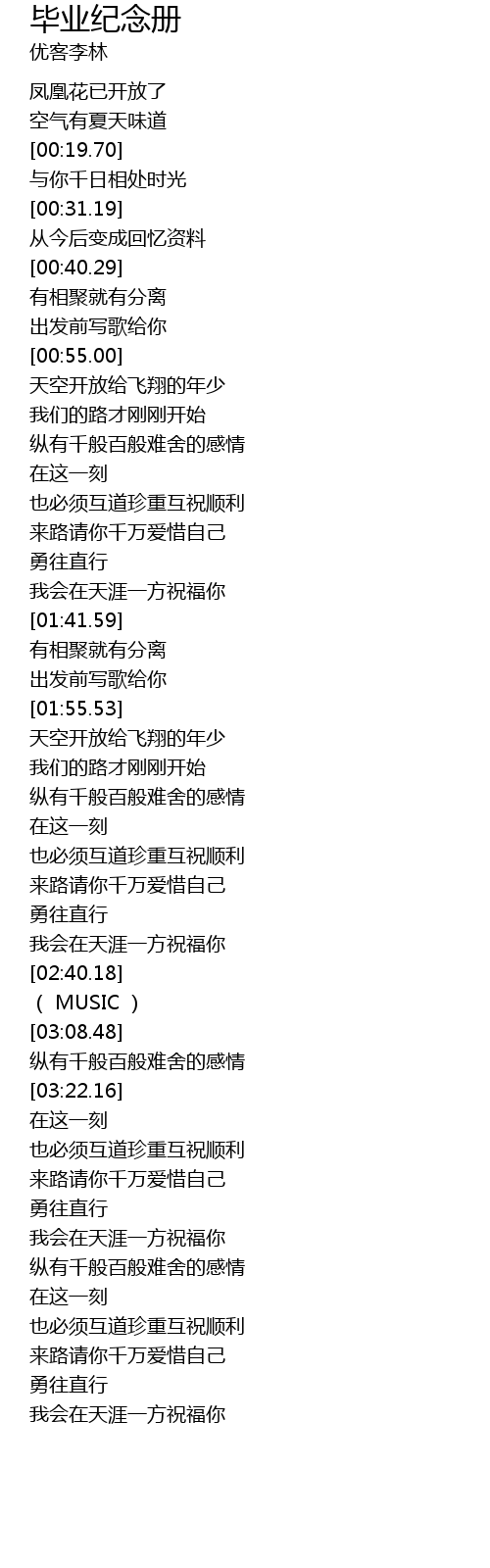 | [03:32.67] | 来路请你千万爱惜自己 |