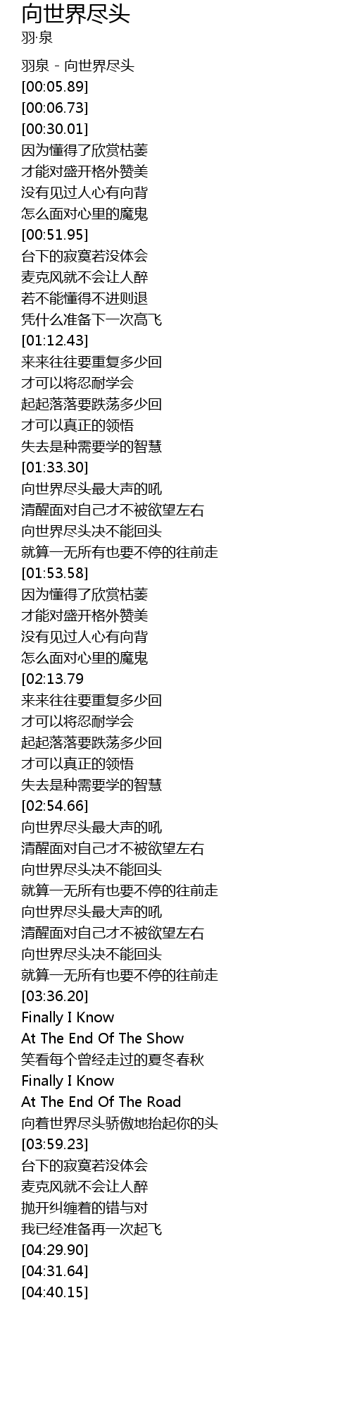 | [00:01.12] | 羽泉 - 向世界尽头 |