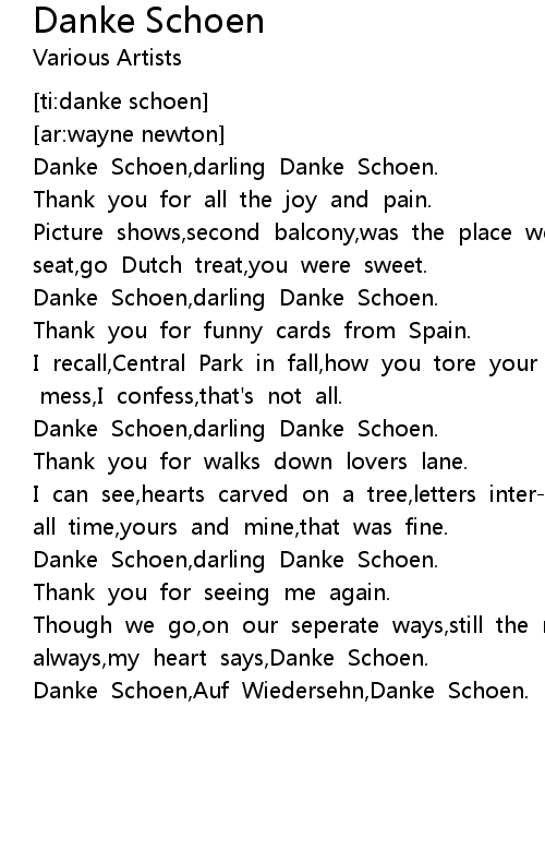 Though we go,on our seperate ways,still the memory stays,for always,my heart says,Danke Schoen. |