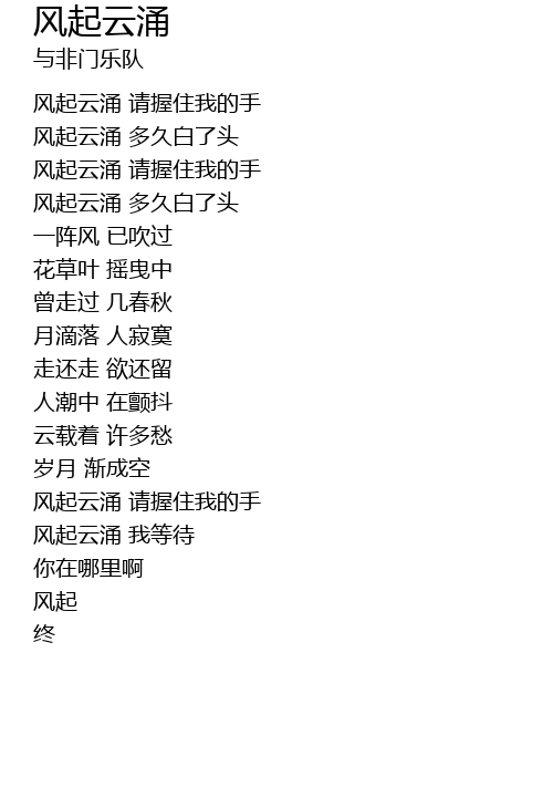 | [00:00.99] | 风起云涌 请握住我的手 |