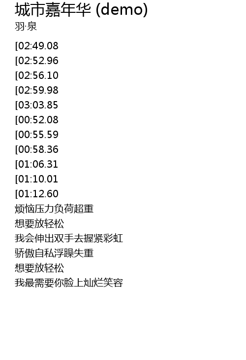 | [02:09.53][01:10.01] | 心情放轻松 |