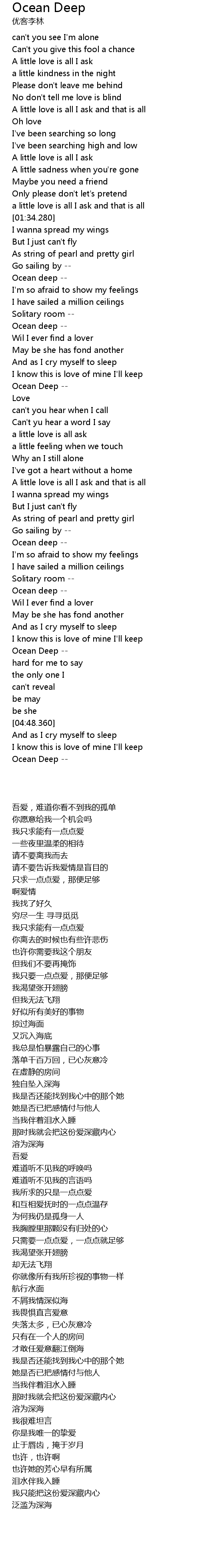 | [01:51.160] | Ocean deep |