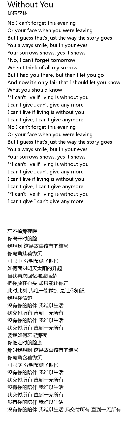 | Song | Without You |