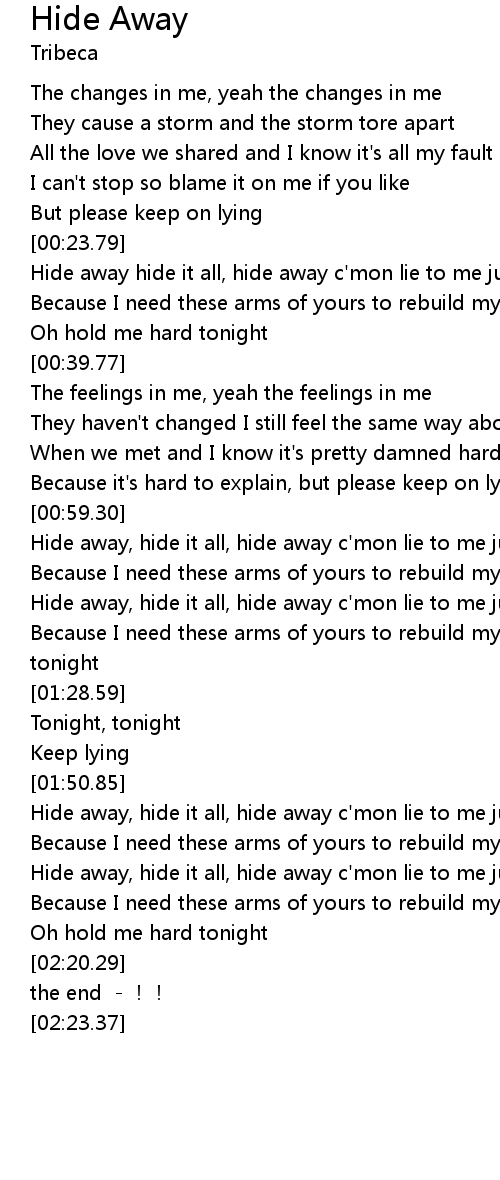 | [00:59.60] | Hide away, hide it all, hide away c'mon lie to me just on more time |