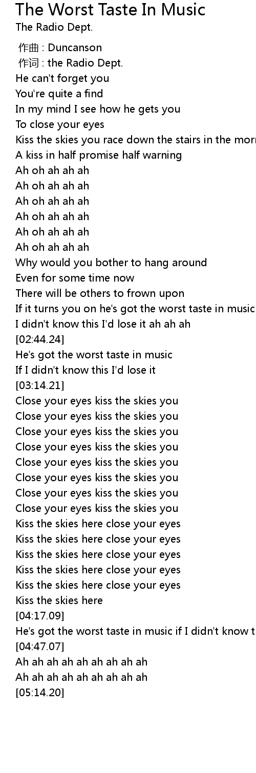 | [03:03.05] | He' s got the worst taste in music |