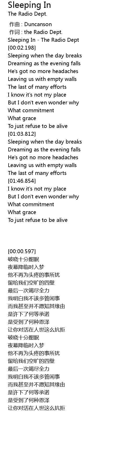 | [00:25.433] | Sleeping when the day breaks |