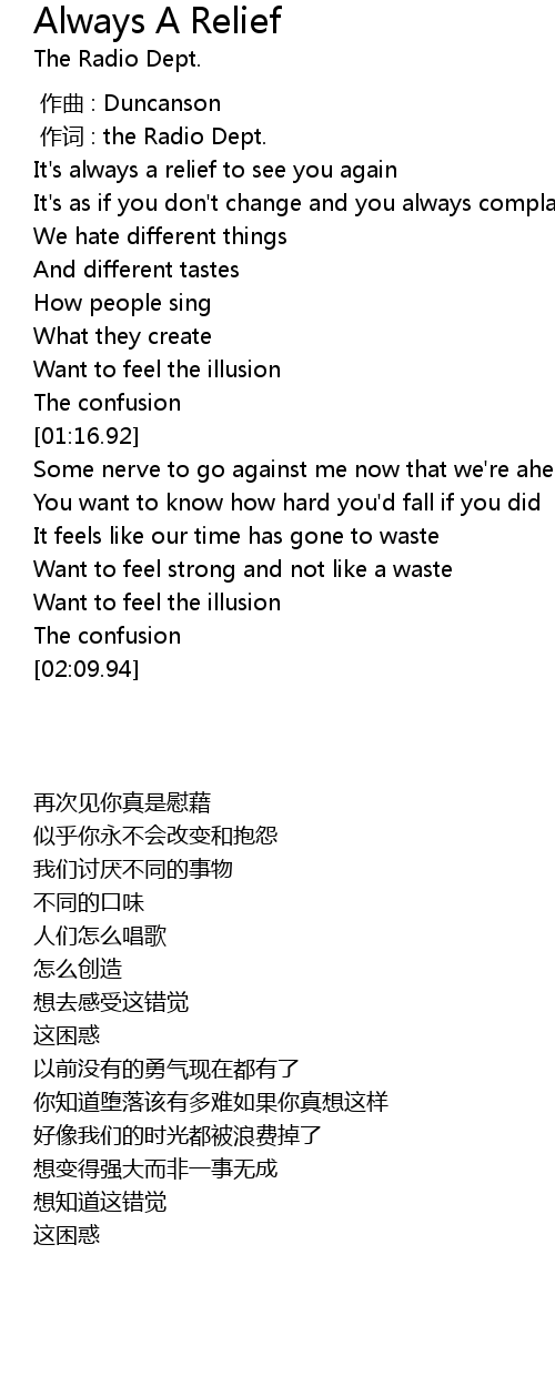 | [00:01.00] | zuò cí : the Radio Dept. |