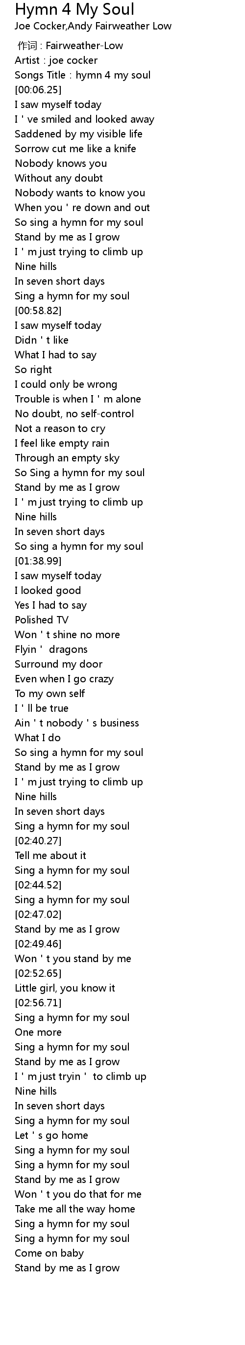 | [00:03.30] | Songs Title:hymn 4 my soul |